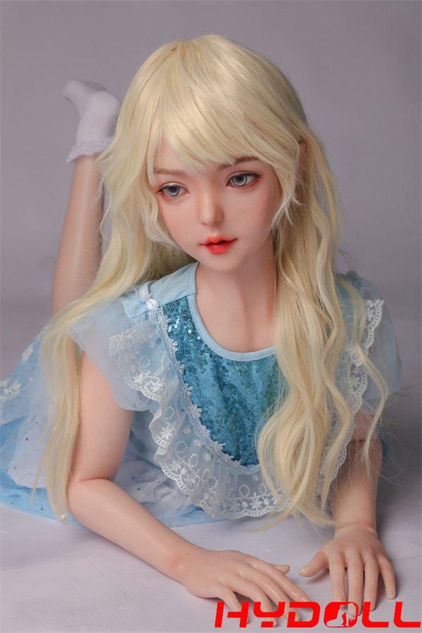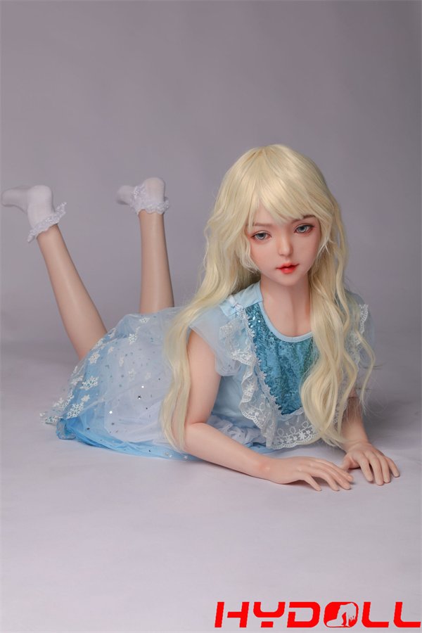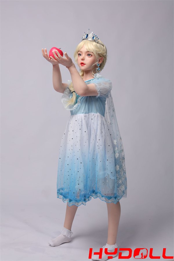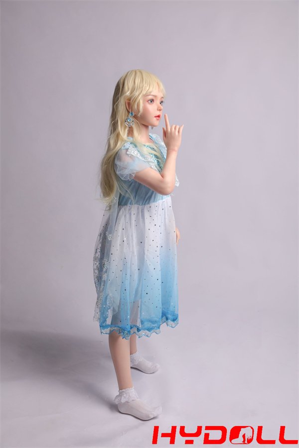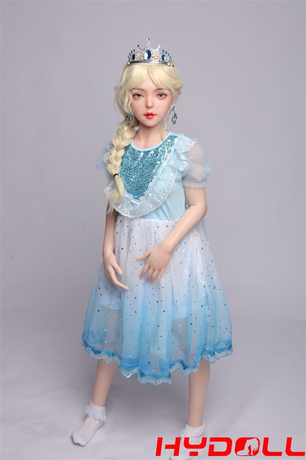 Standing at 130CM tall, this princess doll boasts a symmetrical and slender figure, complemented by smooth and fair skin. Adorned with cascading golden curls that reach her waist, her hair is beautifully paired with a delicate crown accessory. The doll is dressed in a provocative blue miniskirt, revealing a snow-white torso. Beneath the skirt, she wears thigh-high blue stockings that impeccably match the ensemble. The arms and legs exhibit intricate detailing of natural muscular contours.