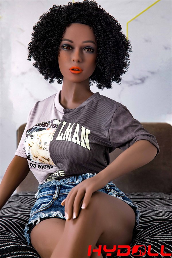 The 152 cm tall black sexy sex doll has a head of lush curly hair and is an afro-style female.